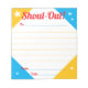 Des cris ou des félicitations quotidiens ou occasionnels en reconnaissance de vos employés victoires au quotidien est facile avec ce bloc-notes prêt à glorifier votre personnel sur un préavis de quelques instants! Personnalisez-le avec votre propre texte et votre propre jeu de couleurs.