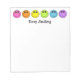 Ce coussin a une rangée de visages dans les couleurs arc-en-ciel de rose, orange, jaune, vert, bleu et violet sur le dessus, et les mots "Gardez le sourire". Le texte peut être personnalisé.