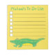 La conception d'un bloc-notes de liste de contrôle comporte une illustration originale d'un alligator vert et jaune (ou crocodile). Personnalisez simplement vos informations. De nombreux autres blocs-notes illustrés sont également disponibles dans cette boutique. Cette conception est également disponible sur d'autres produits. Ne vois-tu pas ce que tu cherches ? Vous avez besoin d'aide pour la personnalisation ? Contactez Rebecca pour avoir quelque chose conçu pour vous.