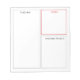 Ce bloc-notes comporte trois sections : Liste des tâches, Projets URGENT et Projets en cours. Divisez rapidement et identifiez vos tâches, puis faites les choses par ordre d'importance. Ce système d'organisation est parfait pour un horaire flexible qui n'est pas le même tous les jours, que ce soit à la maison ou au bureau. Les en-têtes de section peuvent être customisés si vous avez des besoins spécifiques, et les couleurs peuvent également être customisées à vos favoris, ou pour correspondre à votre marque d'entreprise.