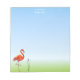Beau flamant sur bloc-notes bleu clair. Le texte peut être personnalisé.