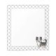 Illustration originale de Destei d'un chien de race Chihuahua vêtu d'un manteau bleu de merle. Les bords de l'arrière - plan ont un motif d'empreintes de pattes de chien gris tandis que le milieu est blanc.