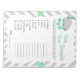 Mint Green & Grey Elephant Baby shower - Word Scramble Game Notepad. Réponse à la ruse de mots : 1. Bassinet 2. Déchets 3. Bouteille 4. Crib 5. Siège De Voiture 6. Mobil 7 Shampooing 8. Serviette 9. Balais bébé 10. Pacifique 11. Poussette 12. Booties 100% Personnalisable. Prêt à remplir dans la ou les cases ou Cliquez sur le bouton PERSONNALISER pour ajouter, déplacer, supprimer, redimensionner ou modifier une police ou un graphique. Fabriqué avec un vecteur haute résolution et/ou des graphiques numériques pour une impression professionnelle. REMARQUE : (IL S'AGIT D'UNE IMPRESSION. Toutes les conceptions de produits zazzle sont des "impressions" sauf indication contraire dans la zone "A propos de ce produit") Le design sera imprimé EXACTEMENT comme vous le voyez à l'écran et sur le produit...par conséquent, assurez-vous que lorsque vous effectuez vos modifications sur le redimensionnement d'un graphique ou d'un texte qui s'insère correctement dans les zones et que votre orthographe et votre libellé sont ceux qui vous plaisent dans la taille, la couleur et la police. Si vous avez des questions sur ce design, veuillez me contacter à l'adresse siggyscott@comcast.net ou visiter le lien de mon magasin : http://www.zazzle.com/designsbydonnasiggy?rf=238713599140281212 (Copier et Coller) Je serai heureux de vous aider. Merci pour le support et l'arrêt par mon magasin - DesignsbyDonnaSiggy. © Donna Siegrist