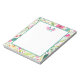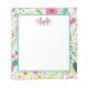 Ce mignon bloc-notes présente un joli motif floral dans les tons rose, teals, vert et jaune sur le blanc. Personnalisez le monogramme avec votre choix de nom et d'initiale.