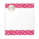 Un motif de zigzag faux rose brillant et faux or embrasse le haut et le bas de ce pavé et a un cercle doré près du bord supérieur gauche sur lequel votre monogramme personnalisé apparaît.