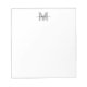 Bloc-notes à monogramme simple et classique. Ce design intemporel présente un fond blanc épuré, une lettre initiale gris clair en haut au centre, et un nom en calligraphie noire élégante en dessous. La disposition minimaliste et sophistiquée en fait un choix polyvalent pour n'importe quel bureau ou collection de papeterie.