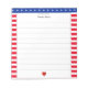 Bloc-notes à motif étoile et cadre rayé rouge et blanc avec lignes de cœur en bas. Le texte peut être personnalisé. Convient à tout le monde ! Visez les étoiles !