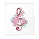 Pink treble clef with delicate, detailed pink Japanese cherry blossoms against white background painted over with light blue paint Blooming pink sakura.