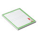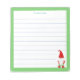 Joli nain moderne tenant un cadeau surprise avec un bloc-notes à cadre vert ligné. Le texte peut être personnalisé. Idéal pour les enfants et les adultes !