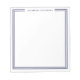 Bring a clean, modern touch to your everyday notes with this notepad. Each sheet features a white background with a classic double border in navy blue and space at the bottom to display your full name in a timeless serif font. The backing sheet is solid navy blue with a white initial monogram for a subtle, polished detail.