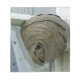 Un nid de frelons accroché à la fenêtre du deuxième étage du tribunal du comté de Iron, à Ironton, Missouri.