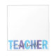 Avez-vous l'enseignant parfait. Ce bloc-notes est le cadeau idéal pour montrer votre appréciation. Personnalisez avec leur nom. Personnalisez les couleurs pour un style personnel. Note de conception : lors de la saisie du nom de l'enseignant dans la zone de texte, vous verrez une petite boîte devant et derrière le nom. Assurez-vous de ne pas taper dessus. Cela gardera les petits fioritures à la fin des lettres. Utilisez également des minuscules pour de meilleurs résultats.