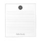 Simple Elegant Black Grey Lined Monogramme Nom Ces blocs-notes personnalisables sont simples à utiliser tous les jours ou à envoyer une note officielle à quelqu'un de votre bureau ou bureau. Vous pouvez également choisir une variété de couleurs dans notre boutique pour vos besoins de bureau à domicile. Personnalisez ces blocs-notes avec votre nom ou donnez comme cadeau et personnaliser avec vos amis ou les noms de famille afin qu'ils puissent les utiliser à leur domicile ou au bureau.