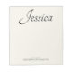Bloc-notes personnalisé simple, moderne et féminin blanc cassé avec votre nom sur le dessus dans un grand script manuscrit. Personnalisé avec vos coordonnées en bas