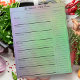Ce planificateur de repas peut être personnalisé avec votre texte de titre. Le design est présenté sur un arrière - plan de couleur arc-en-ciel avec une liste d'achat qui peut être coupé pour votre commodité de magasinage.