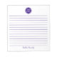 Simple Elégant violet Lined Monogramme Nom Bloc-notes Ces blocs-notes personnalisables sont simples pour chaque utilisation quotidienne ou envoyer une note formelle à quelqu'un de votre bureau ou bureau à domicile. Vous pouvez également choisir une variété de couleurs dans notre boutique pour vos besoins de bureau à domicile. Personnalisez ces blocs-notes avec votre nom ou donnez comme cadeau et personnaliser avec vos amis ou les noms de famille afin qu'ils puissent les utiliser à leur domicile ou au bureau.