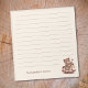 Un bloc-notes avec l'illustration d'un jouet en bois : un ours en peluche souriant à cheval à bascule dans les tons chauds, et un texte personnalisable. Si vous préférez l'espace vide, vous pouvez supprimer les lignes.