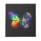 Arc en ciel, papillon monarque lumineux, artistiquement peint avec bouquet de roses irisés, lumineux, lumineux sur arrière - plan noir. Papillon arc-en-ciel.
