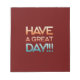 Cette conception qui dit "AVOIR UNE GRANDE JOURNÉE ! ! !" en gras, police tout-casquette. "Day" est suivi de trois points d'exclamation. Cette conception est une façon amusante de prendre le dicton commun "Bonne journée! ! !" et les trois points d'exclamation envoient un message d'excitation. La police en gras garantit que le message est clair et facile à lire. Ce design serait un excellent moyen de répandre la positivité et de faire sourire les gens.