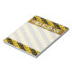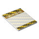 Ce bloc-notes est doté d'un motif de bandes noires et jaunes contenant des symboles musicaux de seize notes. Cela pourrait faire un grand cadeau pour un musicien, un compositeur ou quelqu'un qui aime écouter de la musique. Il dispose également d'un nom personnalisable dans une zone de couleur d'or faux. [~Z0000037]