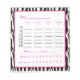 Ajoutez un peu de style à votre prochain événement Bunco. Ce design noir, blanc et zèbre sera certainement un succès. Ajoutez votre propre nom de groupe ou une autre personnalisation.
