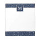 Celebrate the festive season with this personalized navy blue Christmas notepad, designed with classic holiday icons like Santa hats, Christmas trees, gifts, and snowflakes in white. The deep navy background paired with silver accents adds a sophisticated touch to your holiday stationery. The customizable monogram at the top makes it a perfect personal gift or a stylish addition to your holiday desk.