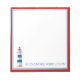 Ce mignon bloc-notes comporte un phare marin d'inspiration côtière en rouge, blanc et bleu classique. Personnalisez avec votre choix de nom ou de texte spécial en bleu correspondant.
