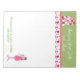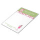 Le pavé de note sur mesure de l'entreprise, recouvert d'un carrelage coloré, est en blanc, avec un en-tête vert, au sommet, avec une bordure coquine décorée de pétoncles. Les graphiques d'un mignon ange et d'une courtepointe rose, verte et blanche ornent le pavé de notes. Personnalisez le texte pour lire tout ce que vous voulez.