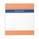 Bloc-note Pointe Polka blanche orange avec Bleu Royal