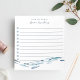 Personnalisez ce bloc-notes côtier chic doublé à faire avec deux lignes de texte personnalisé dans un script bleu marine classique et des lettres serif. Le design comprend une école de poissons d'aquarelle bleu nageant le long du fond. Montré avec "du bureau de [Nom]" et les cases à cocher alignées pour garder toutes vos tâches les plus importantes organisées.