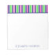 Ce mignon bloc-notes monogrammé présente des rayures lumineuses dans des tons de rose, vert, bleu marine et blanc. Personnalisez avec votre choix de nom.