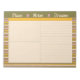 A modern stationery notepad, featuring several types of space to organize your thoughts- dot grid, lined and blank spaces bordered by a bright, hand drawn lilac, yellow, green, and cream striped pattern and a header proclaiming "Plans Notes Dreams" in a groovy retro font, with a blank space under the header for your title and date.