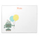 Caricature d'un mignon robot souriant vert sur roues qui a des ballons bleus et jaunes dans ses mains robotisées. Un design coloré, adorable et gai pour les enfants qui aiment la science-fiction ou les jouets robotisés ! Personnalisez avec le nom de l'enfant sur le ballon.