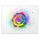 Grand rose fleuri avec pétales arc-en-ciel sur arrière - plan blanc, peint sur des éclaboussures de peinture colorée et lumineuse. 3d