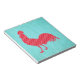 Une silhouette de coq à motifs de quatrefoil rouge est sur un arrière - plan de couleur turquoise avec une texture de grain de bois.