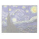 Starry Night by Vincent van Gogh is a vintage fine art post impressionism landscape cityscape painting featuring a view of Saint Remy, France from van Gogh's asylum. The night sky is swirling with clouds with a bright crescent moon and shining stars over the quaint village. Starry Night is probably van Gogh's most famous painting and was painted during the day from memory.
