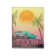 Caricature de l'affiche de voyage automobile vintage de Stockton California USA.