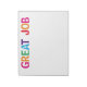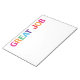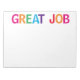 Ce 11 x 8,5 pad de notes en larmes est parfait pour tous ! Avec ses couleurs vives et joyeuses et son imprimé en bloc classique disant "Great Job", ce serait génial de donner à quiconque a fait un excellent travail ces derniers temps ou ce serait une merveilleuse note de mettre sur le déjeuner de quelqu'un, bureau, travail scolaire, ordinateur, etc.