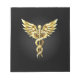 Symboles Caduceus polygonaux or sur arrière - plan noir isolé. Basse poly symbole de la médecine.