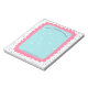 Jot down festive lists and seasonal messages with this Christmas holiday notepad. Featuring a charming, hand-drawn doodle style pink scallop border on rounded aqua blue rectangle with white dots and stars that adds a cheerful touch to holiday planning. Ideal for keeping track of gift ideas, grocery lists, or daily reminders. This personalized notepad also makes a thoughtful, functional gift tucked inside a Christmas card for friends and family.