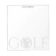 Papeterie personnelle simple pour fan de golf. Zone de texte/nom personnalisé centrée en haut. Texte de golf avec silhouette de golfeur mâle intégrée en gris clair au fond. Contactez-nous pour obtenir de l'aide sur la personnalisation ou pour toute personnalisation adaptée à vos besoins.