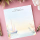 Ce bloc-notes personnalisé élégant présente un voilier paisible glissant sur des eaux calmes, encadré de florales délicates à l'aquarelle. Les teintes pastel douces créent une esthétique sereine et rêveuse, ce qui le rend parfait pour les amateurs de nautisme, les passionnés de décoration côtière ou ceux qui apprécient une ambiance de bord de mer relaxante. Personnalisez le texte en haut pour un détail unique et attentionné - idéal pour le journalisme, la papeterie de bureau ou comme cadeau pour les amateurs d'océan et de voile.
