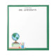This teacher notepad features a graphic of a world globe sitting on top of the stack of books. Personalize this note pad with teacher's name.