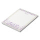 Ajoutez une touche de charme à vos notes avec ce bloc-notes présentant un fond crème doux, des bordures délicates de lavande violette et un détail de papillon inspiré des champs paisibles de l'été. Personnalisez avec un nom ou un titre. Cadeau idéal pour ceux qui aiment l'art botanique et le style classique.