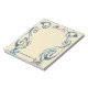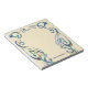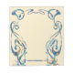 Cette carte de correspondance exquise présente une bordure proéminente et ornée dans le style Art nouveau, caractérisée par ses lignes fluides et organiques ainsi que des motifs floraux stylisés. La bordure, rendue dans des nuances de bleu, de vert et d'or avec une apparence vieillie ou texturée, encadre une zone centrale de couleur crème plus claire destinée à l'écriture. L'esthétique générale évoque une sensation vintage ou classique, ce qui la rend appropriée pour diverses occasions nécessitant une touche d'élégance.