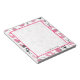 Un bloc-notes à thème couture composé d'une machine à coudre, de bobines de fil, d'un coussin à épingle, de ciseaux, de nuances de tissu et d'aiguilles à coudre. Le design est assorti à des couleurs roses.