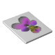 Ce formidable bloc-notes comporte une photo d'une fleur sauvage de Pansy. La photo a été colorée artificiellement, ce qui donne un sansy aux tons clairs et foncés de violet et un centre jaune et noir. L'arrière - plan est gris pâle.