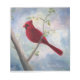 Image d'une peinture mixée originale de Brenda Thour d'un cardinal mâle rouge assis sur une branche d'arbre nue avec un ciel bleu et rose abstrait. Copyright par Brenda Thour 2005.