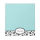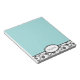 Bloc-notes à fleurs damassé noir et blanc, bleu aqua chic et tendance. Vous pouvez personnaliser le nom sur ce bloc-notes personnalisé.