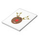 Ce formidable bloc-notes comporte un drôle de dessin animé d'un Reindeer. Il a les yeux noirs et un énorme nez rouge vif et brillant. Les bois pointent vers le haut et semblent futuristes faisant de ce renne un cyber renne. Il est toujours mignon et amical.
